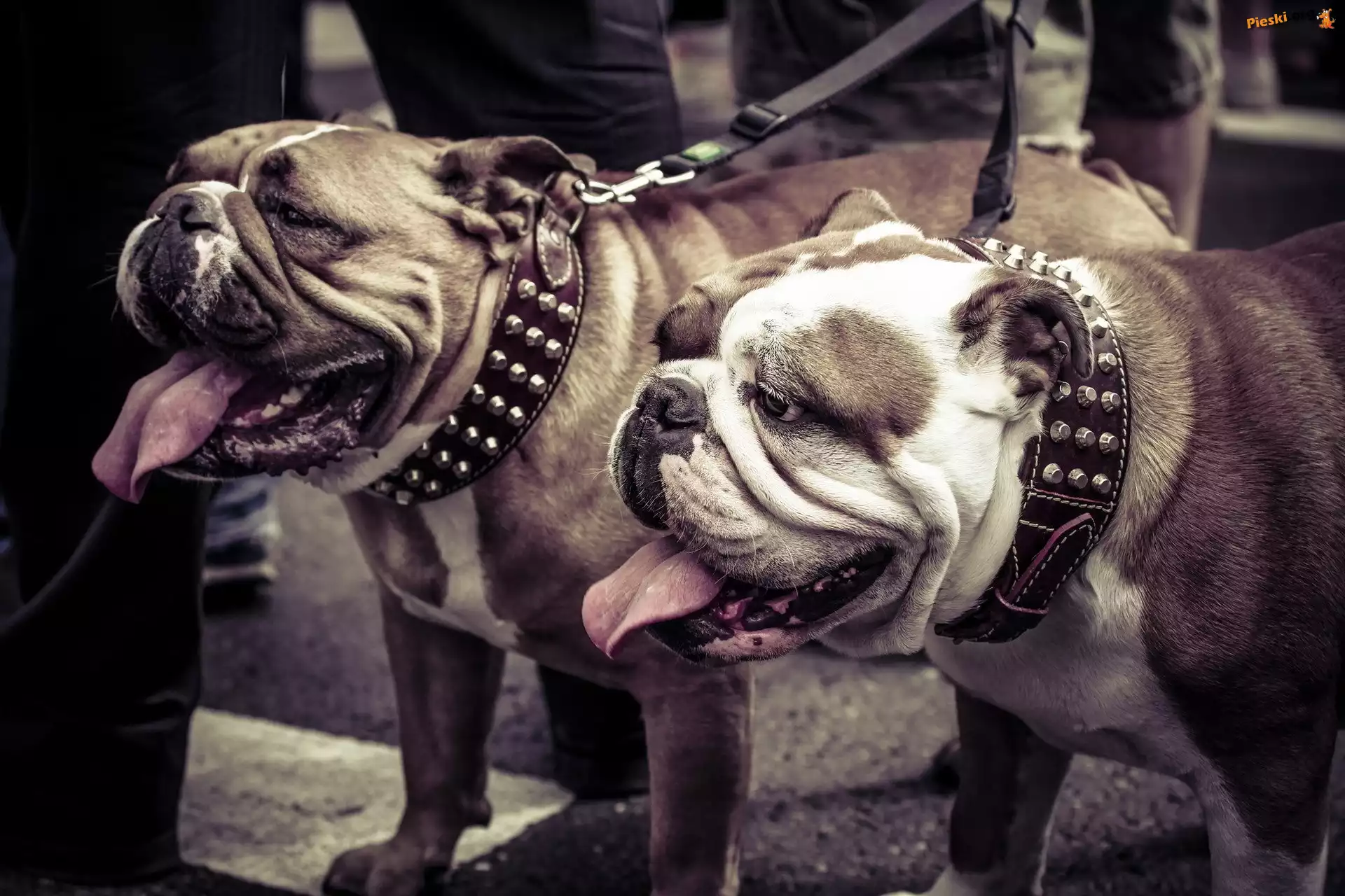 Buldogi, Angielskie, Spacer, Pieski