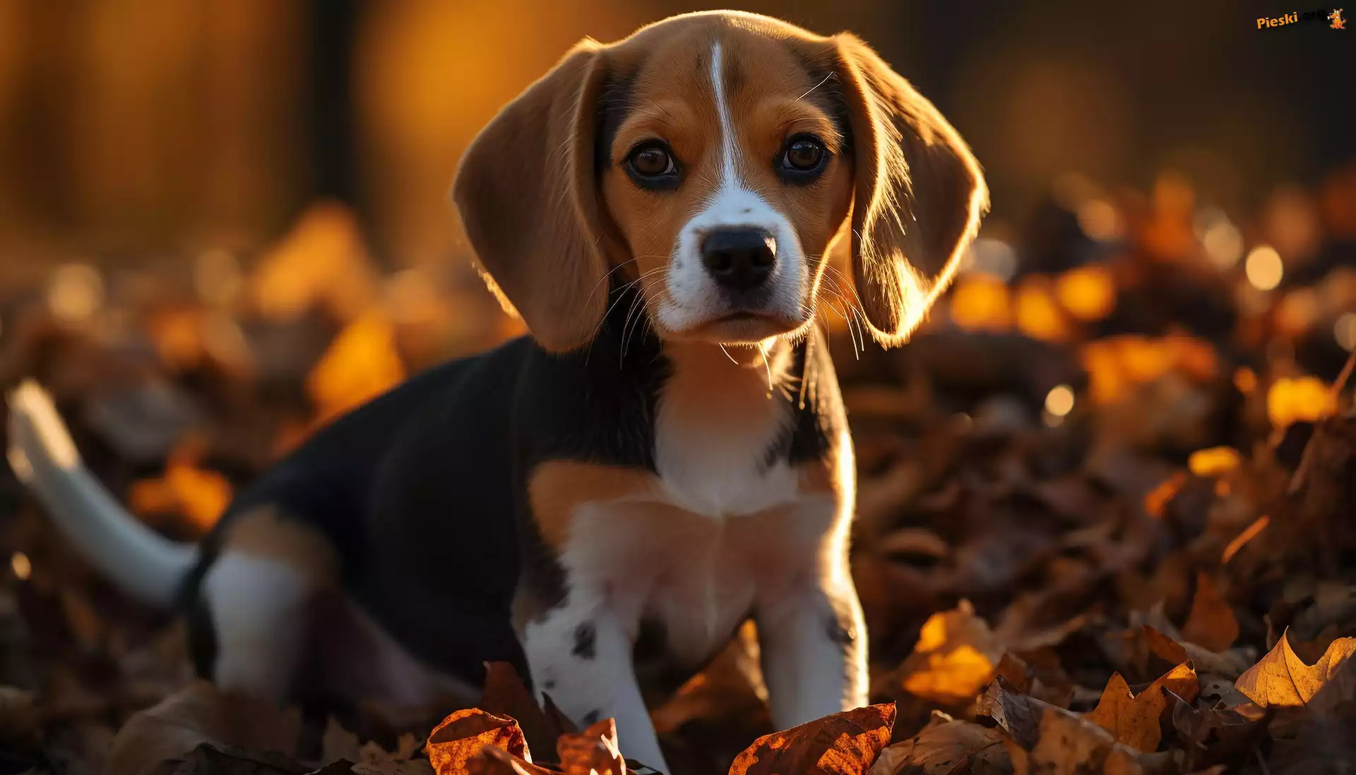 Szczeniak, Grafika AI, Beagle, Liście, Pies, Pieski