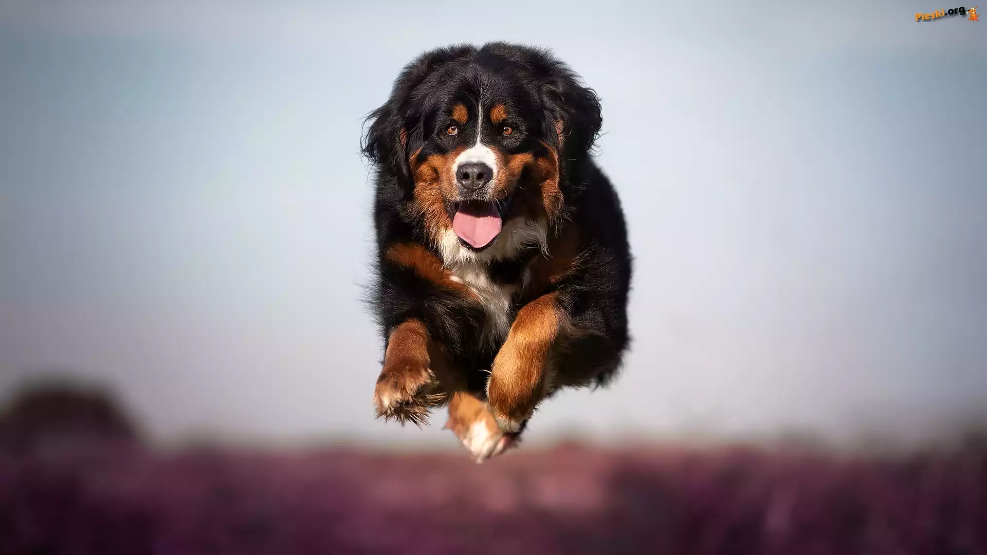 Berneński pies pasterski, Biegnący, Pies, Skok, Pieski