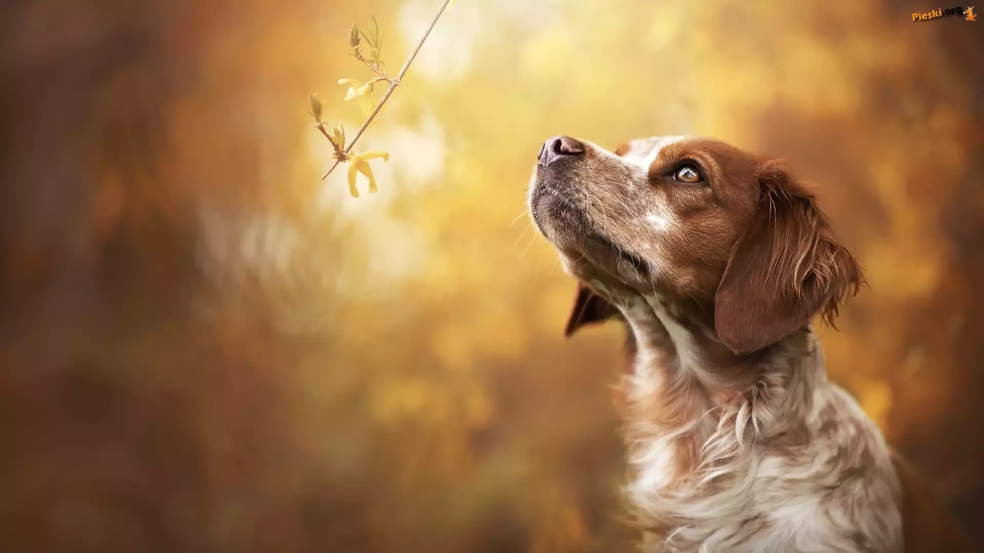 Rudo-biały, Epagneul breton, Pies, Spaniel bretoński, Gałązka
