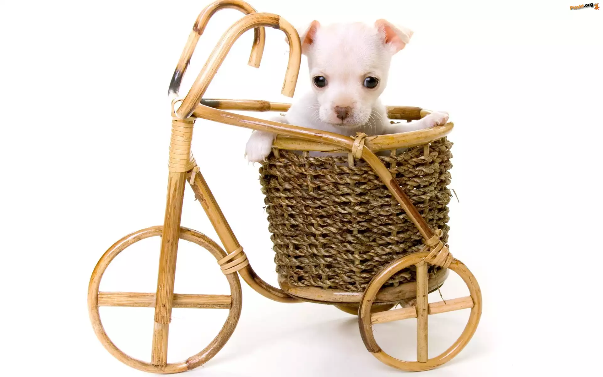Biały, Drewniany, Rowerek, Szczeniak, Pieski