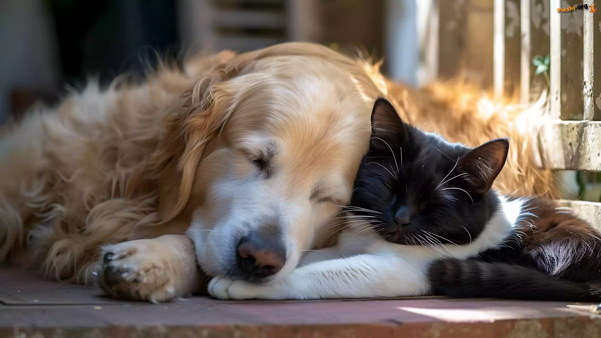 Kot, Pies, Śpiący, Brązowy, Czarno-biały, Pieski