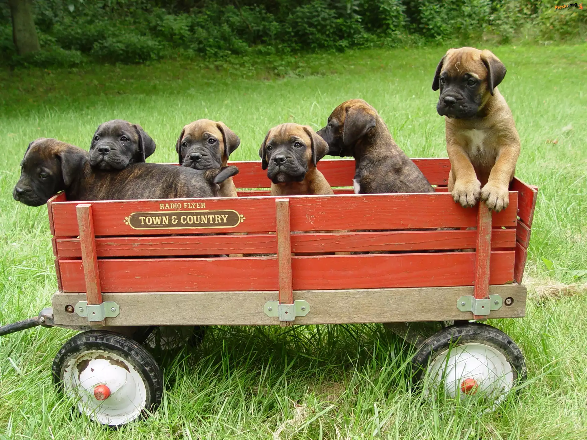 Szczeniaki, Bullmastiff, Wózek, Pieski