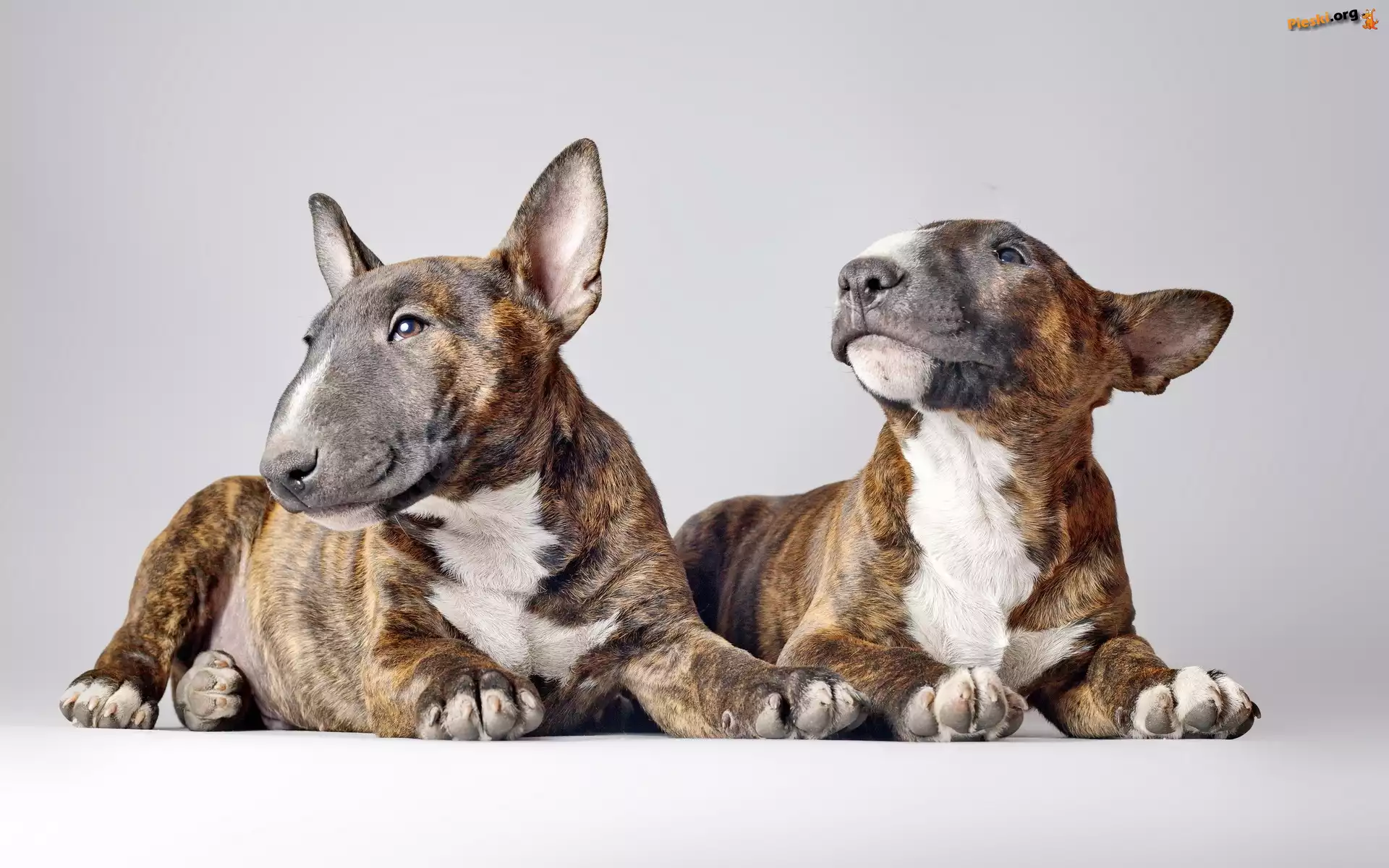 Biały, Bulterier, Trawnik Ściółka, Bulterier, Pies, Pień, Las Pies, Bulterier Kwiaty, Pies, Bulterier, Ścieżka Bulteriery Język, Bulterier, Biały, Głowa, Łata Pies, Bulterier, Dywan Pień, Bulterier, Pies, Skok, Kłoda Biały, Bulterier
