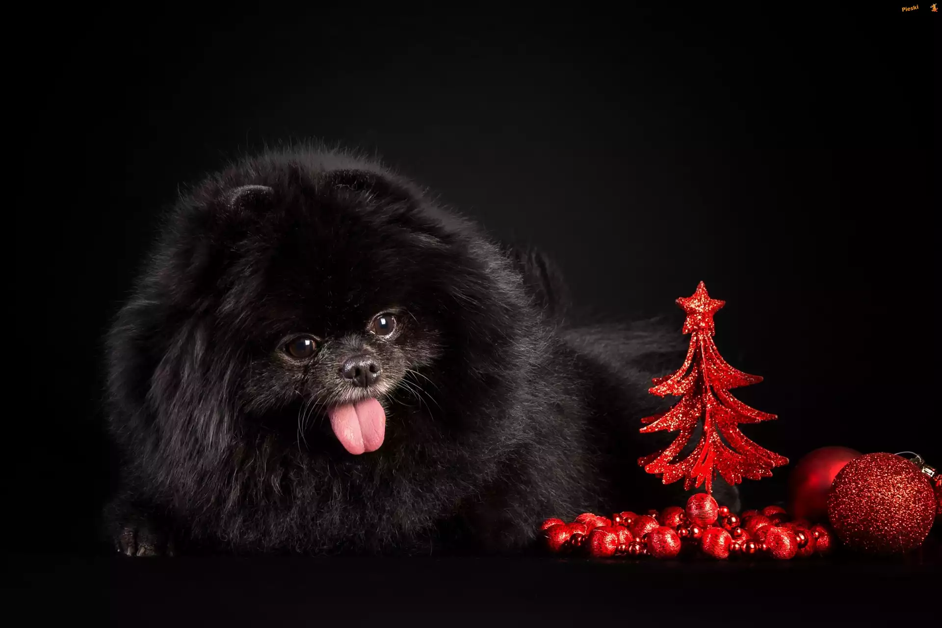 Choinka, Piesek, Czarny, Język, Bombki, Pieski