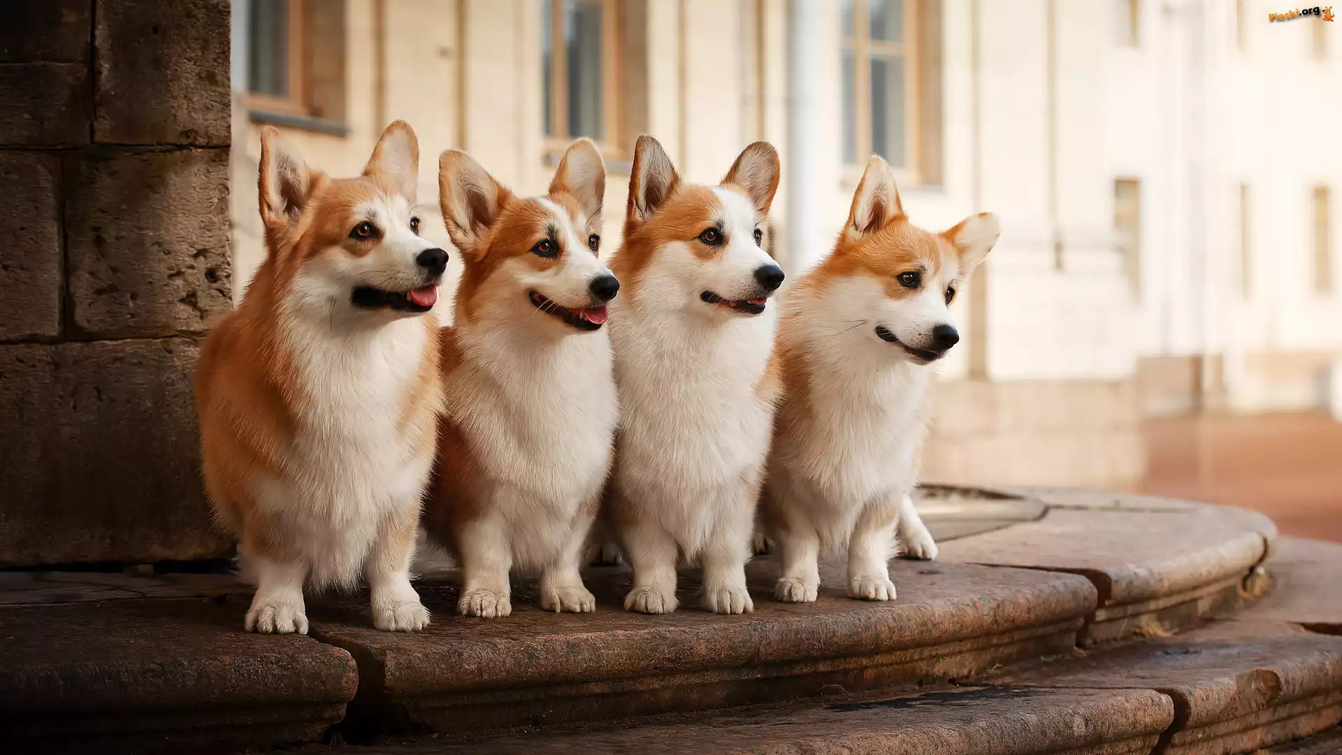 Cztery, Psy, Welsh corgi pembroke, Pieski