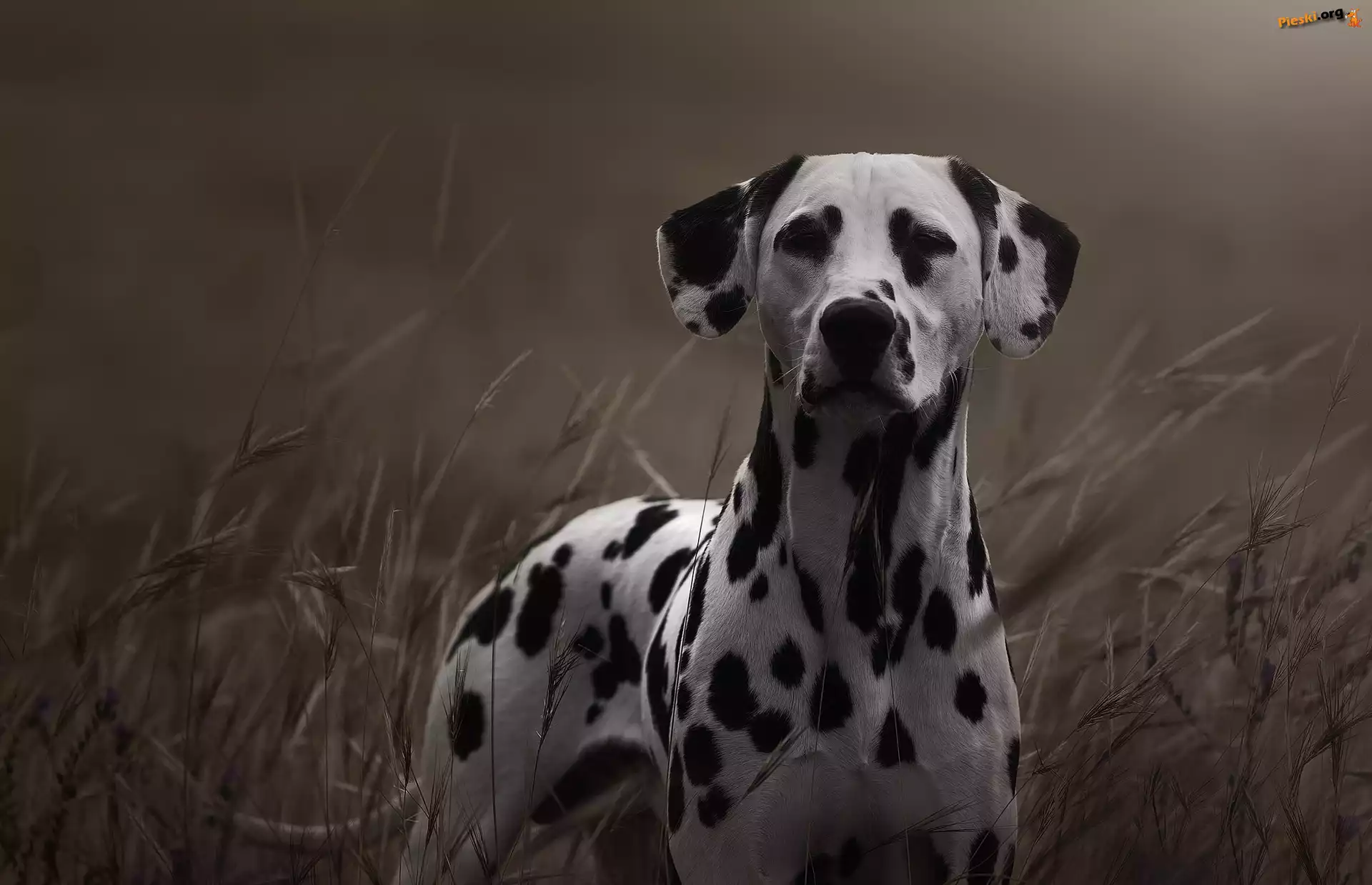 Pies, Dalmatyńczyk, Trawa