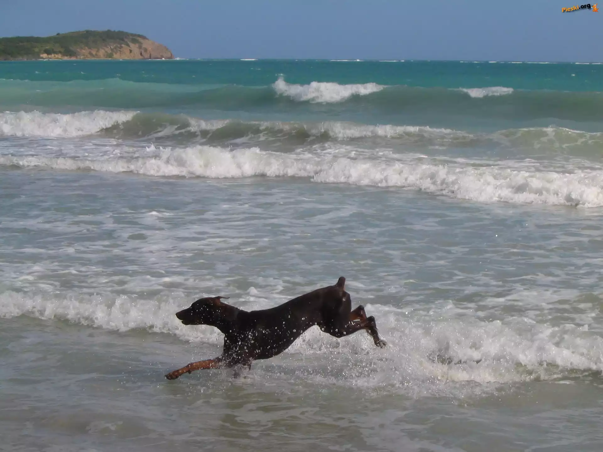 Doberman, Obroża Doberman, Pysk Pies, Doberman Pies, Doberman, Paprocie Biegnący, Doberman, Plaża