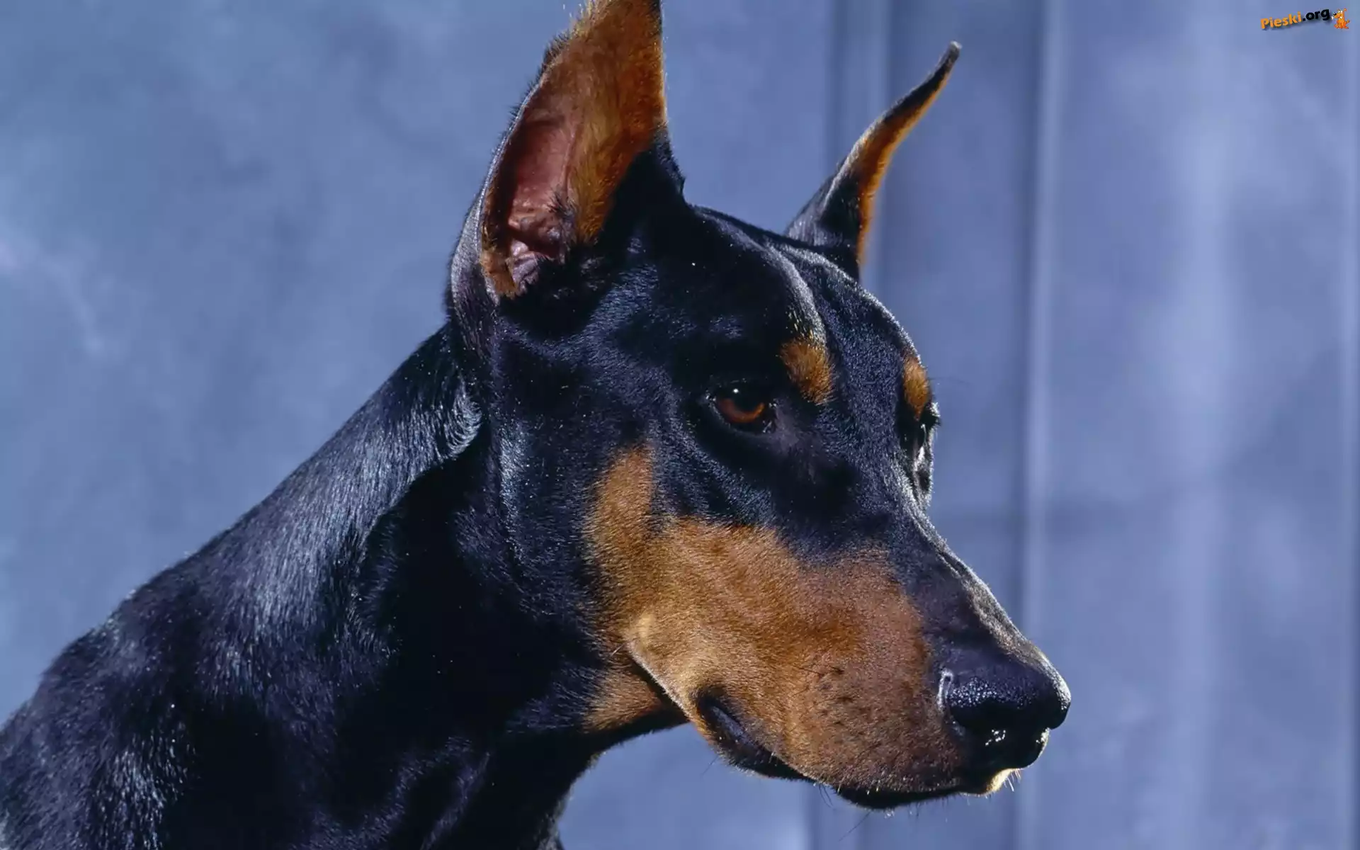 Doberman, Spojrzenie, Obroża Bronzowy, Doberman Mały, Duży, Doberman, Pinczer Doberman Doberman, Mordka, Pies, Brązowy, Wrzosy Czarne, Pies, Doberman, Tło Fotelu, Doberman, W, Pysk Czarne, Doberman, Pies, Światła, Tło Szalik, Pies, Doberman, Kładka
