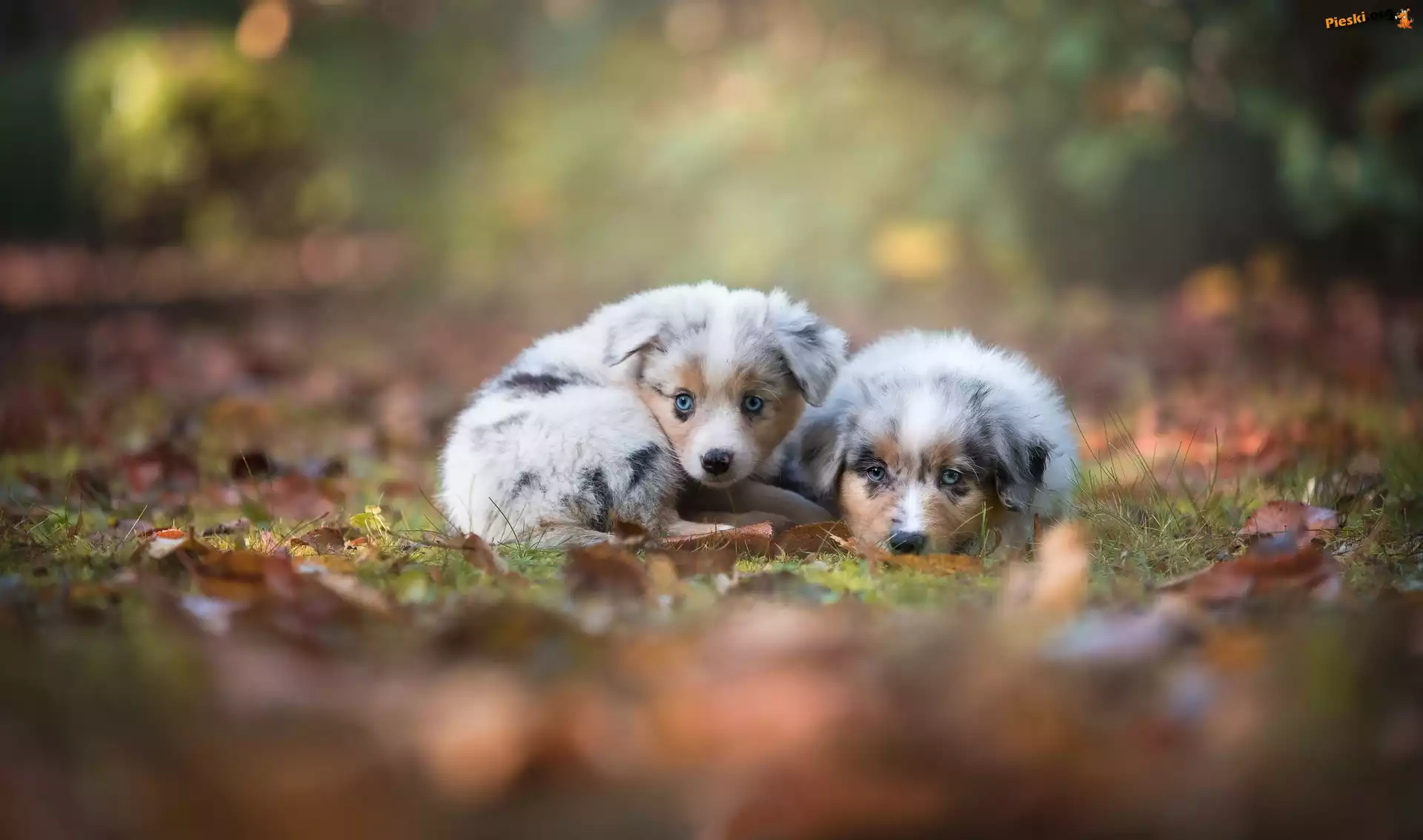 Dwa, Szczeniaki, Owczarki australijskie, Pieski