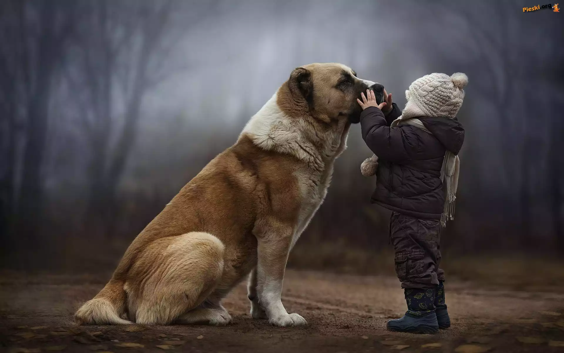 Pies, Dziecko, Drzewa Bullmastiff, Pieski