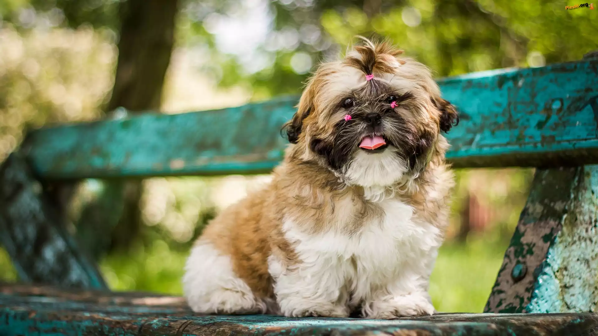Pies, Gumki, Różowe, Shih tzu, Szczeniak, Ławka
