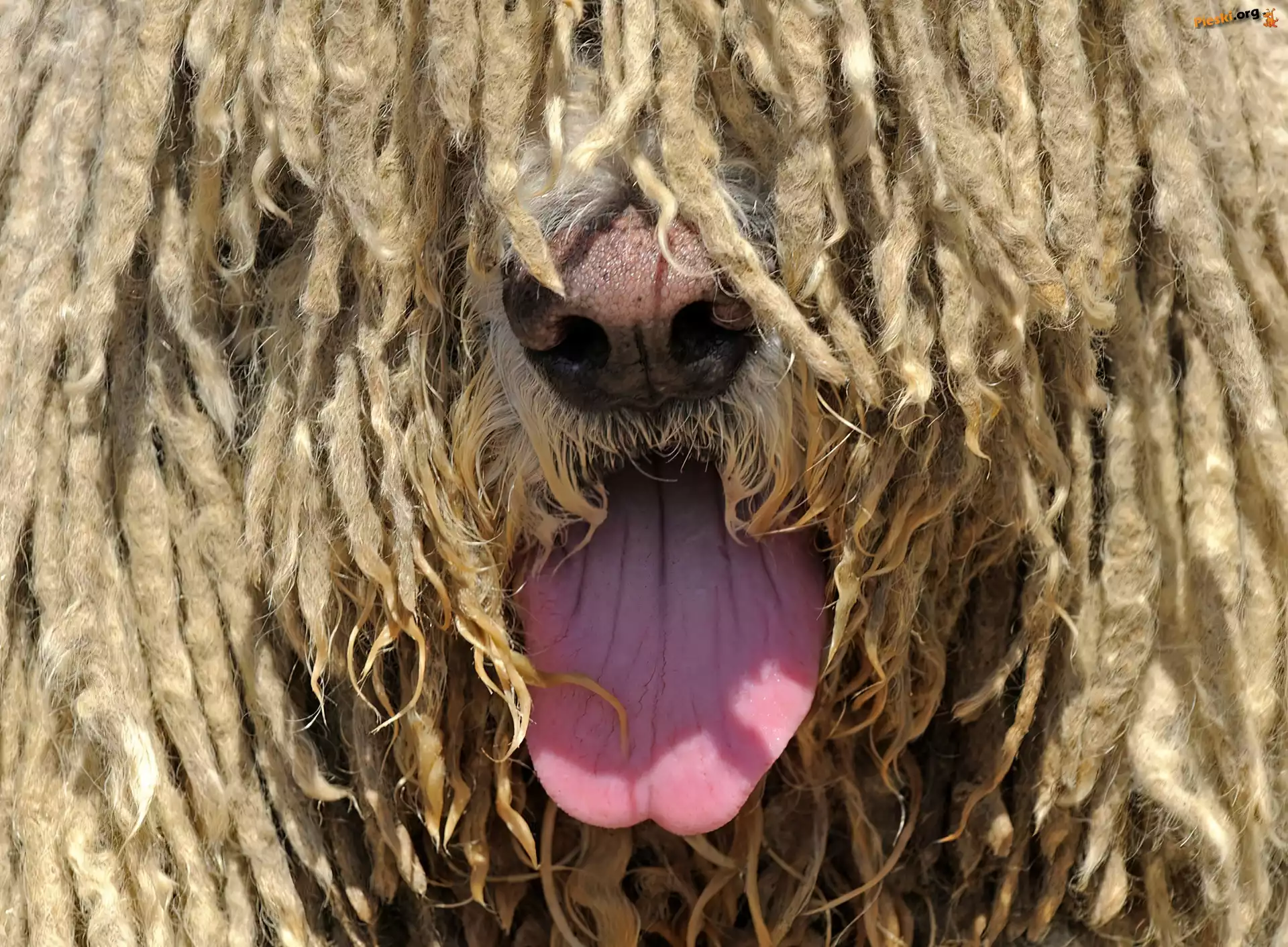 nos, język, Komondora biały, Komondor Komondor, drewno
