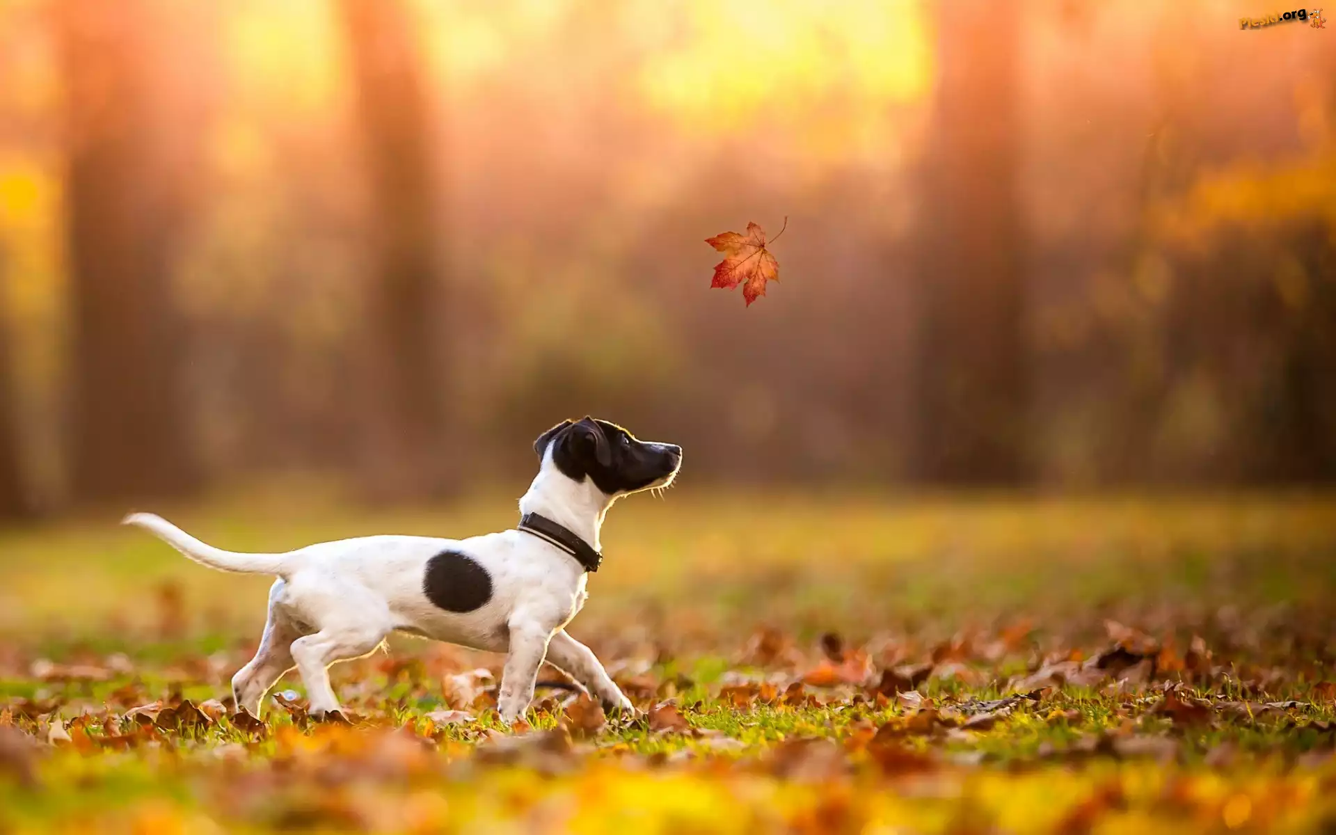 Pies, Liście, Jesień, Liść, Jack Russell terrier, Pieski