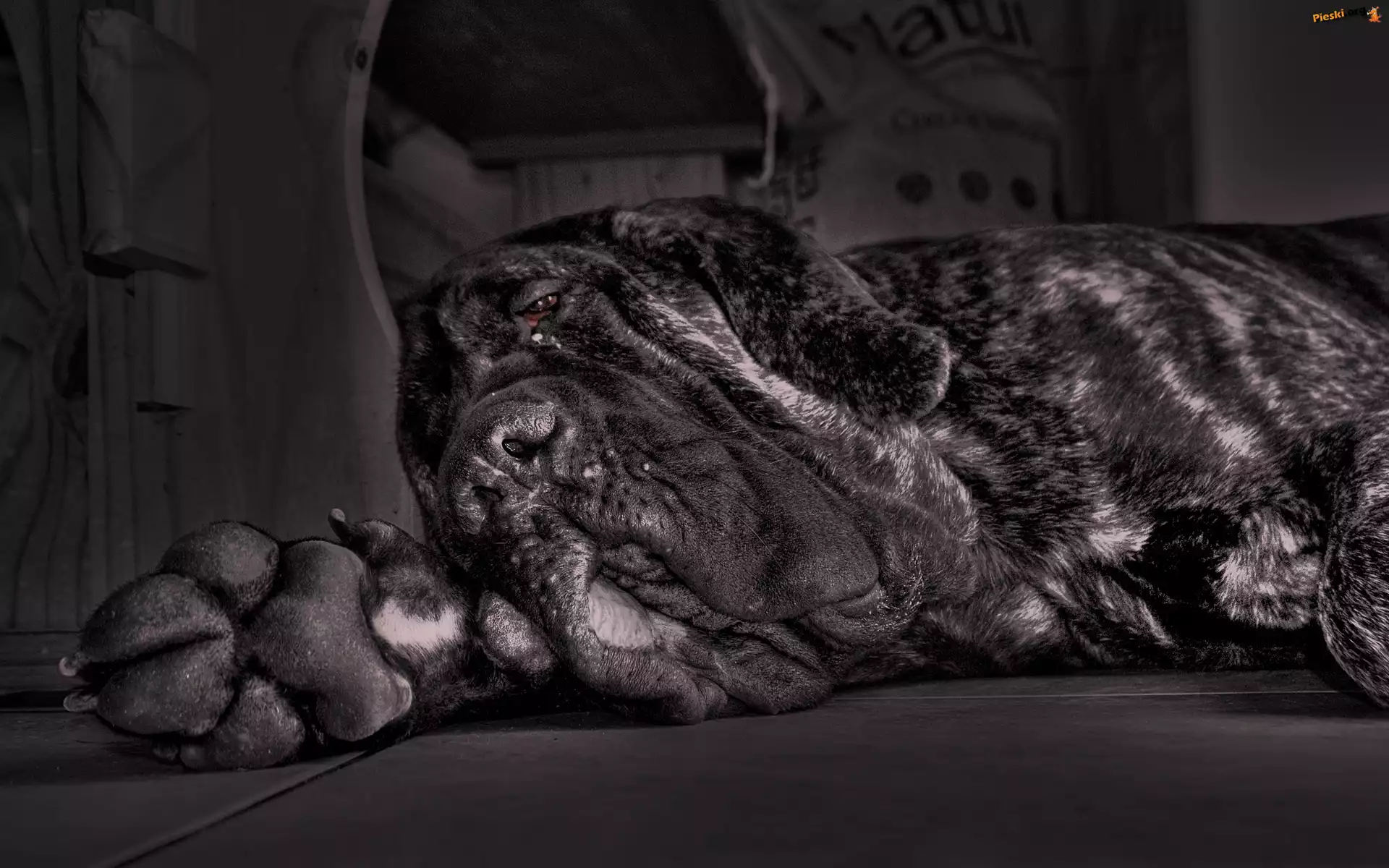 Mastif neapolitański, Pies, Szczeniak, Fotel Mastif, Odpoczynek Pies, Mastif, Neapolitański Morda, Mastifa neapolitańskiego Mastif neapolitański, szare, umaszczenie Mastif neapolitański, czerwona, obroża