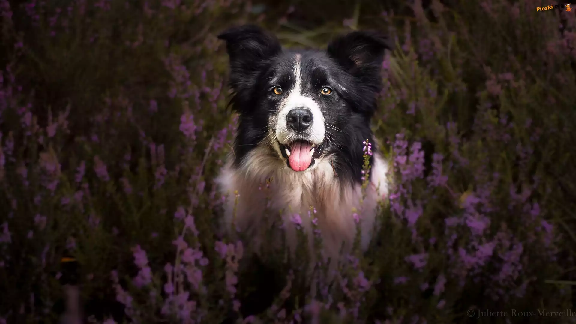 Mordka, Pies, Border collie, Wrzosy, Pieski