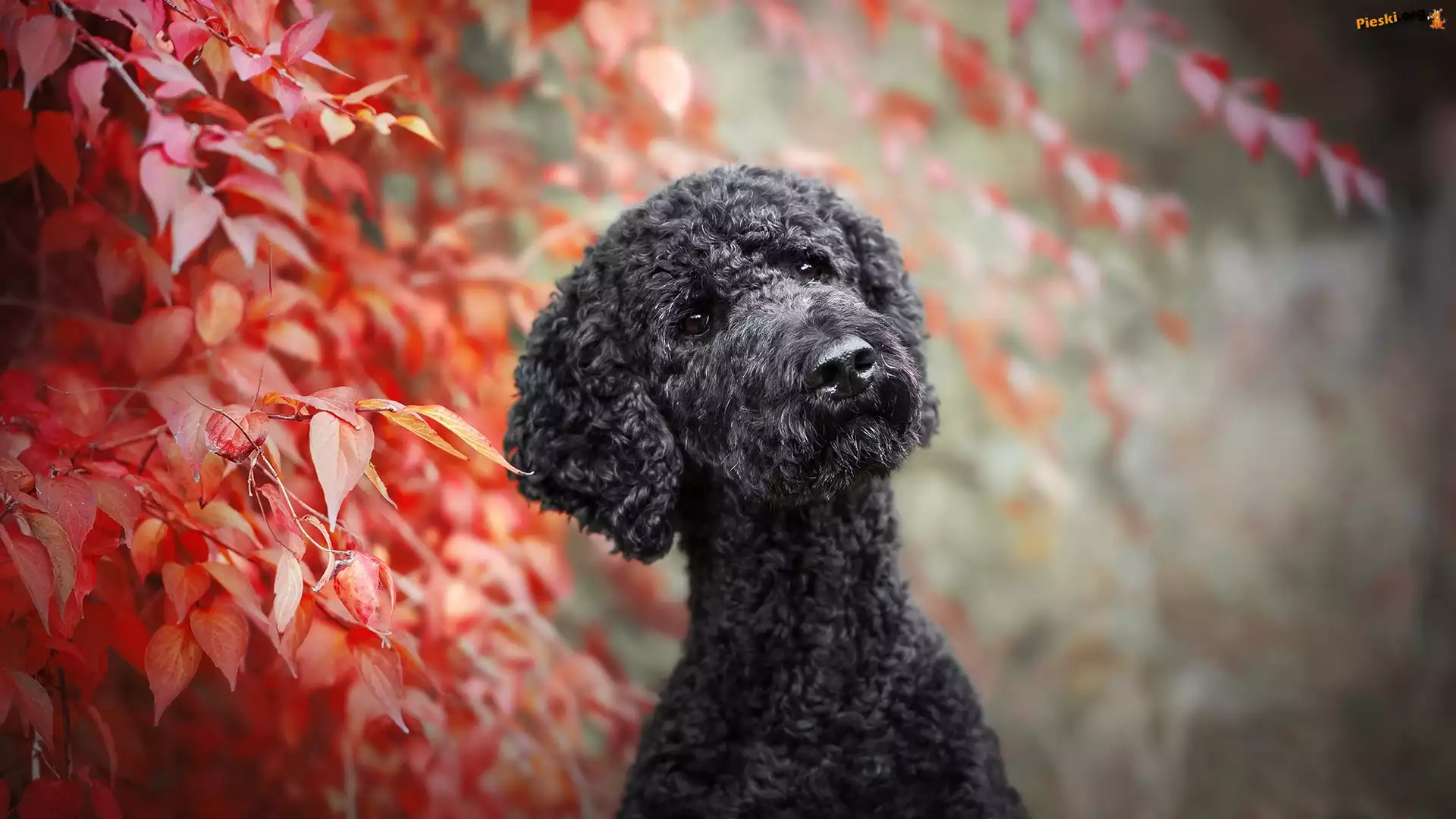 Mordka, Czarny, Pies, Pudel, Liście