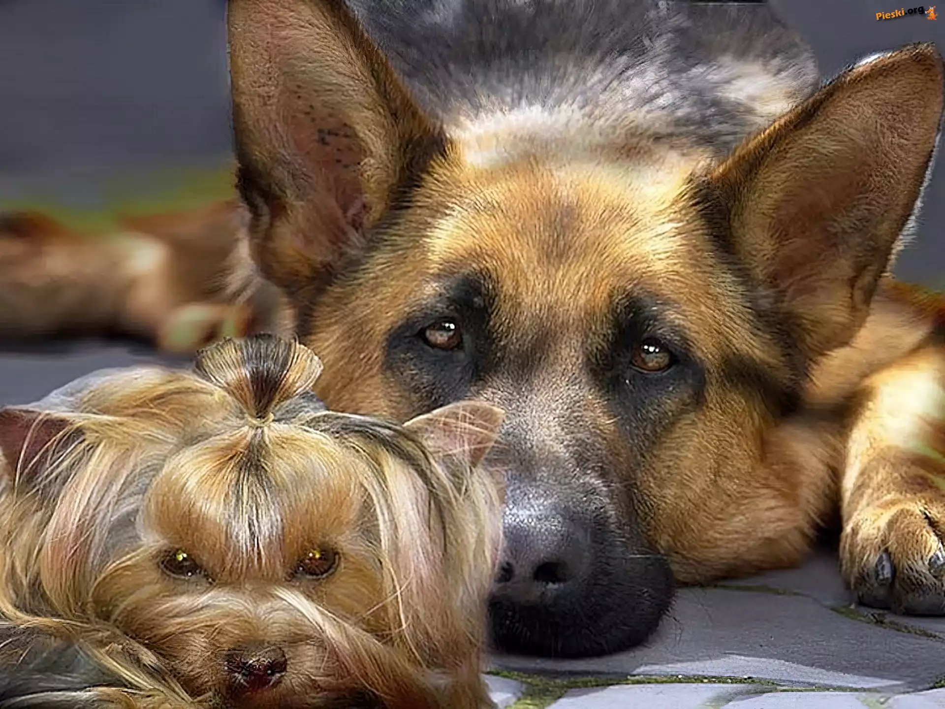 Owczarek, York, Dwa, Niemiecki, Psy, Pieski