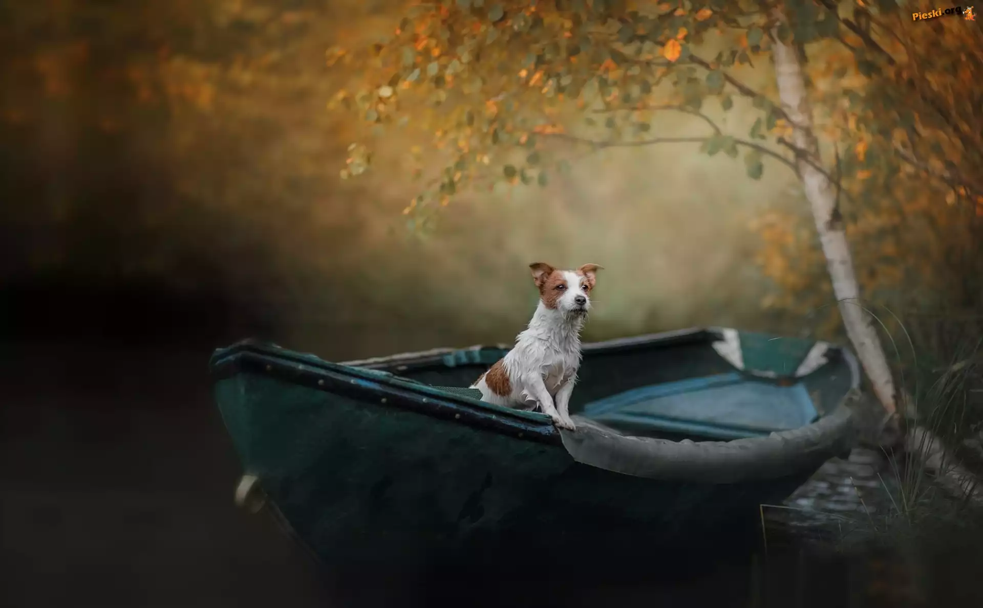 Łódka, Pies, Jack Russell terrier, Brzoza