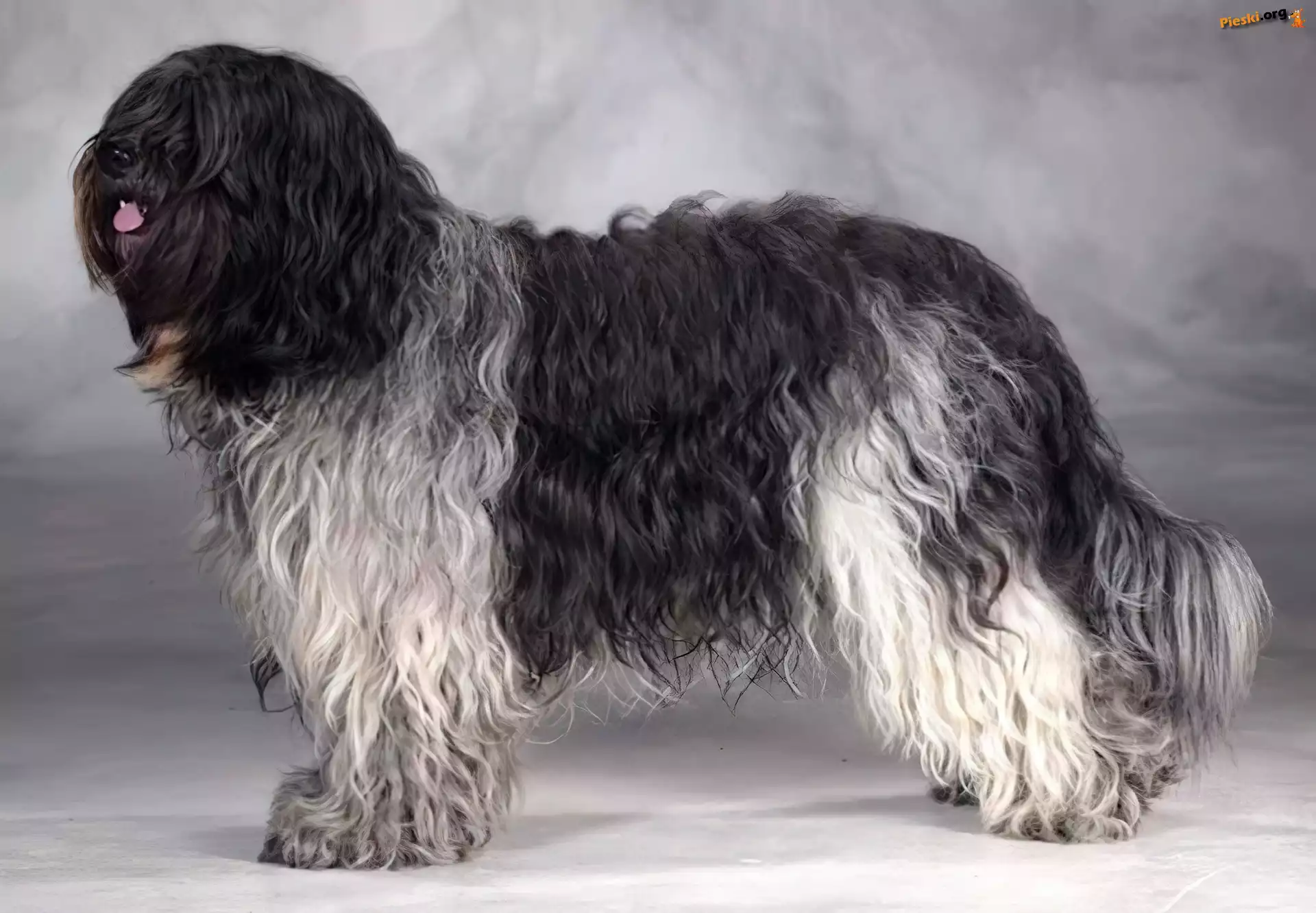 Schapendoes, białe, kwiatki Dwa, szaroniebieskie, Schapendoesy Pasterski, Schapendoes