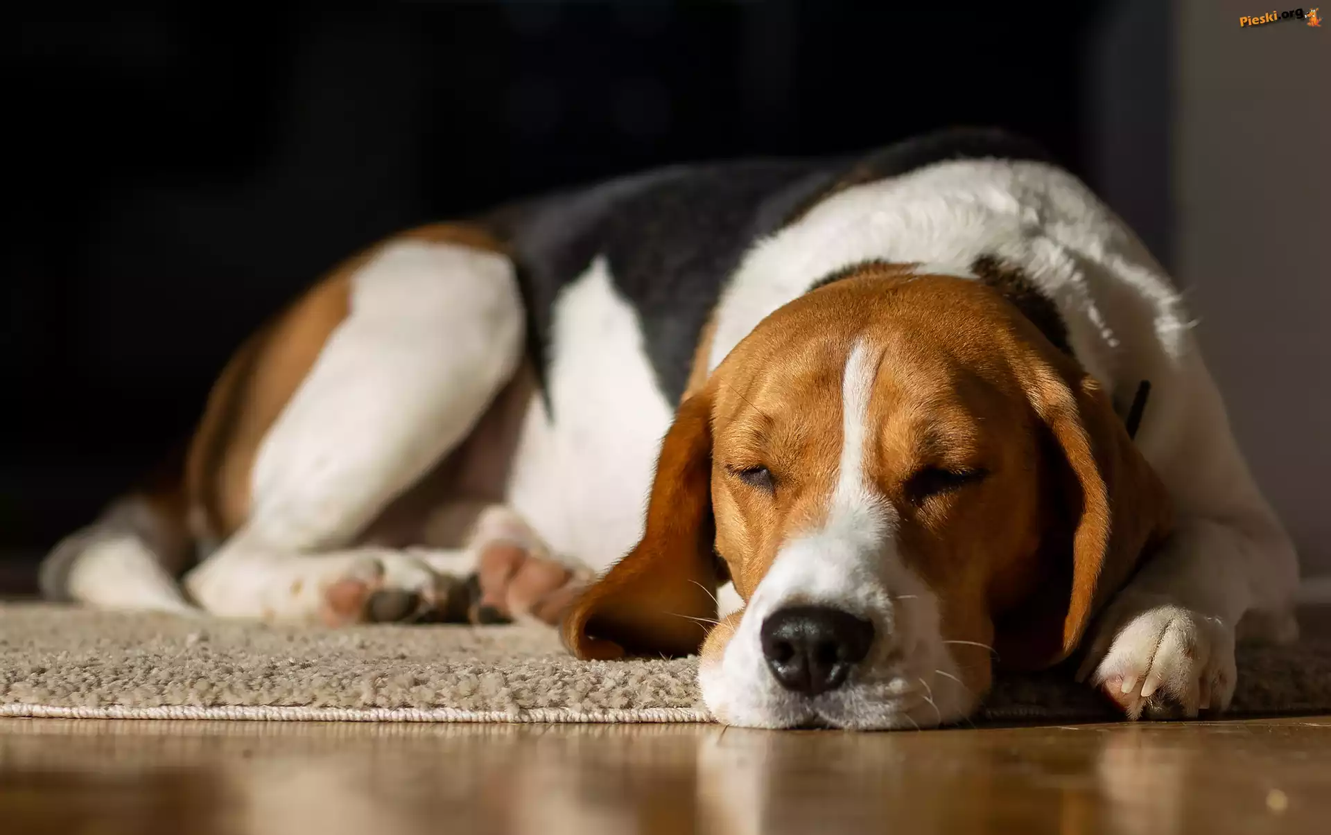 Dywan, Beagle, Śpiący, Pies, Pieski