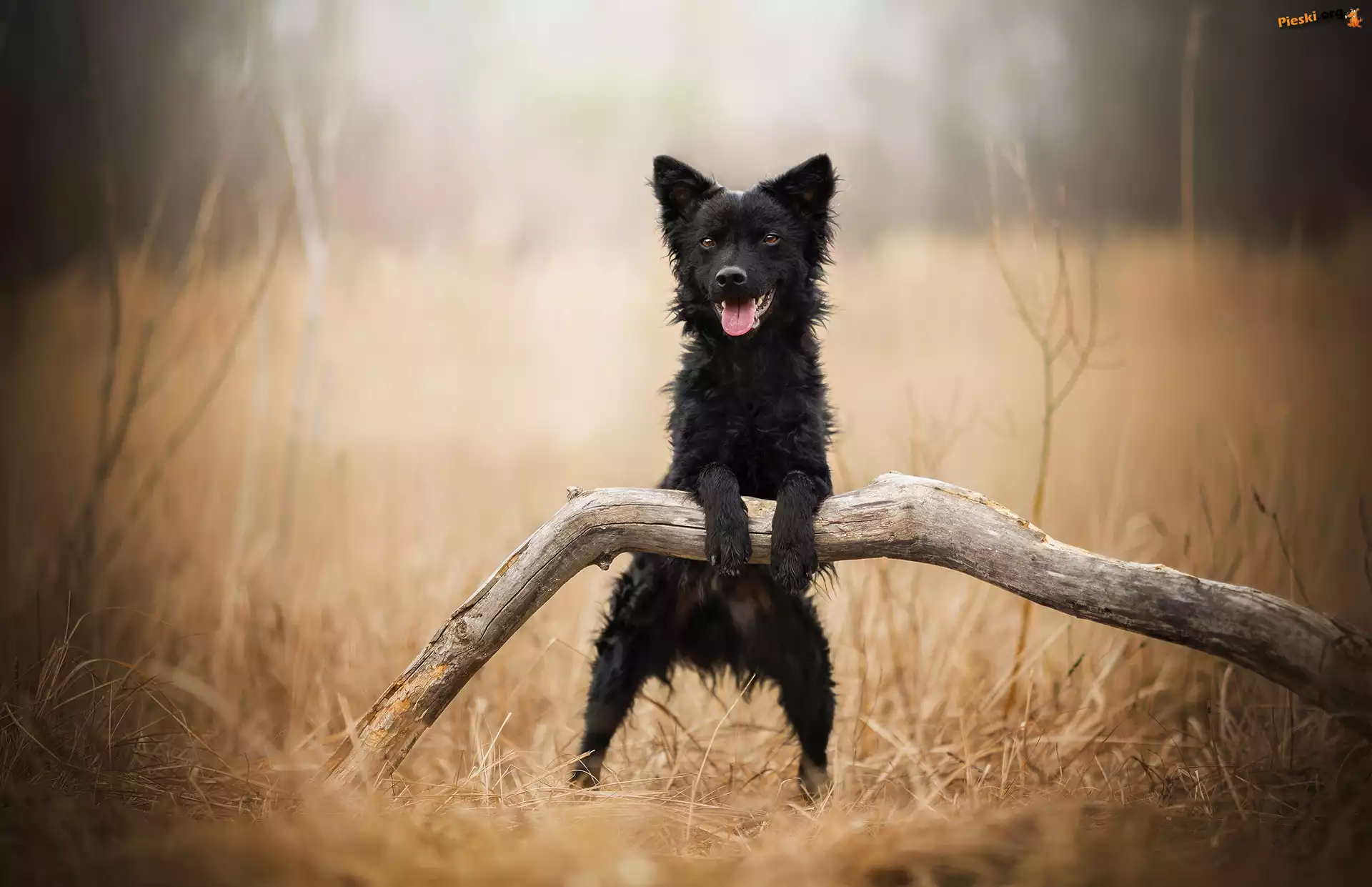 Pies, Łąka, Konar, Kundelek, Postawa, Trawa, Pieski
