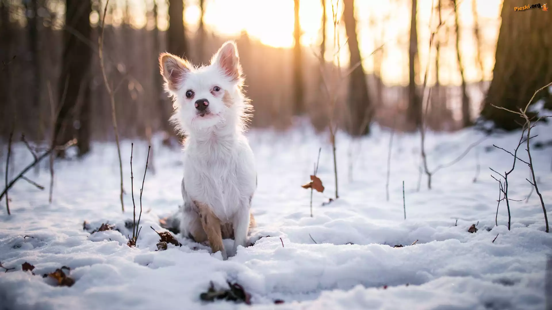 Pies, Gałązki, Śnieg, Kundelek, Zima, Drzewa