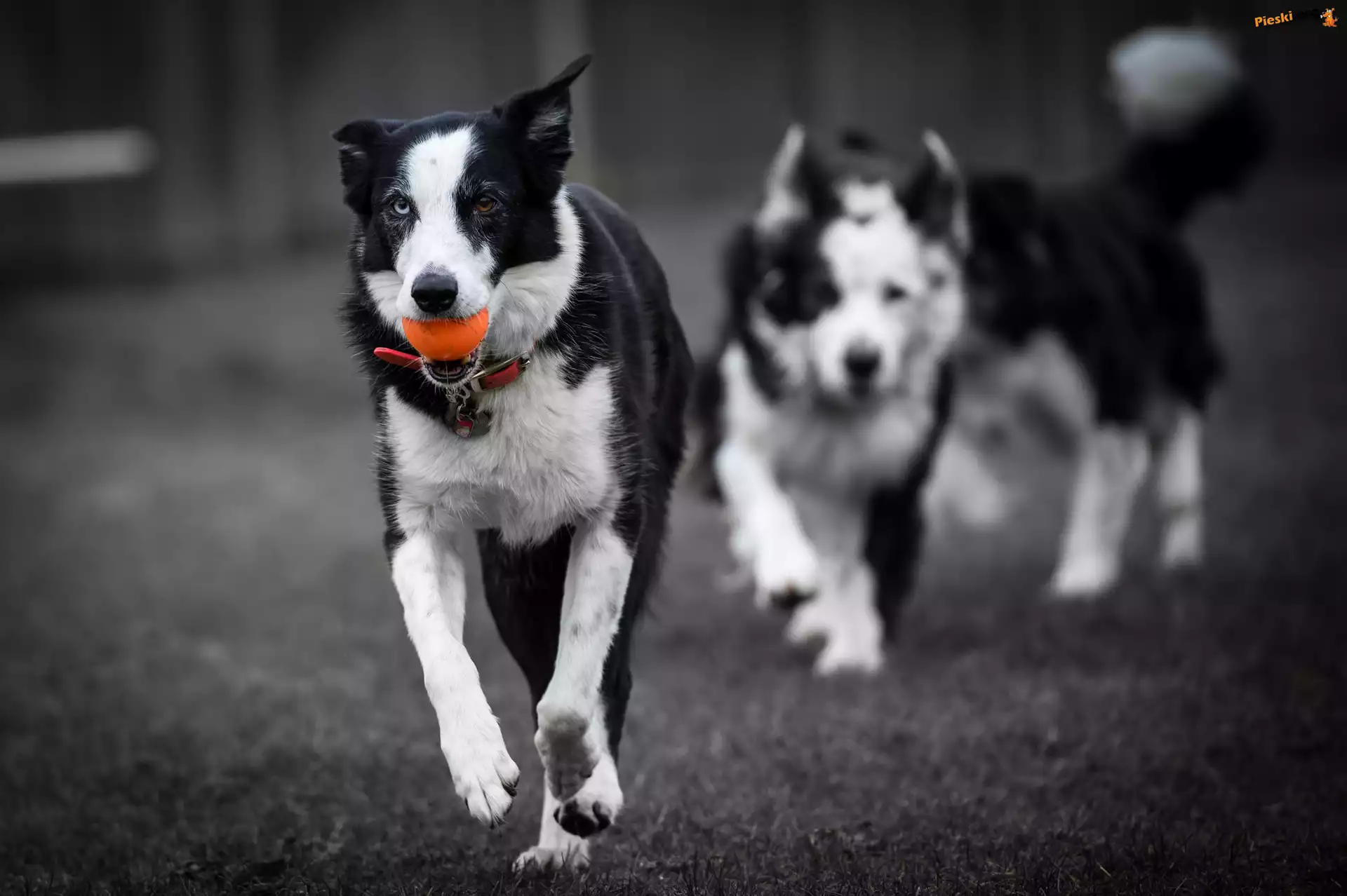 Piłeczka, Psy, Border collie, Bieg, Pieski