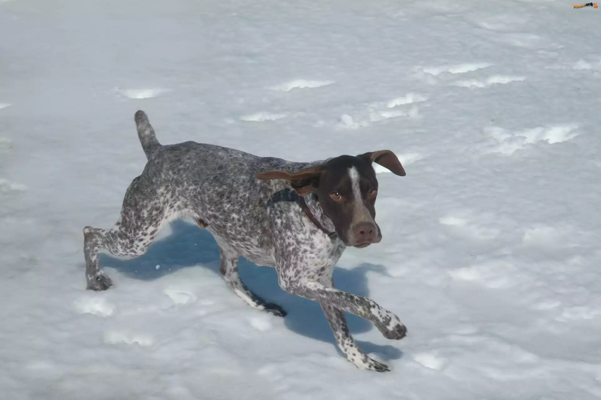 Pies, Orzeł, Przyjaciele Ładny, Pies, Myśliwski morda, Pointera Pointer, śnieg Pointer, czarne, kropki Trawa, Pointer, Łatka, Kwiaty