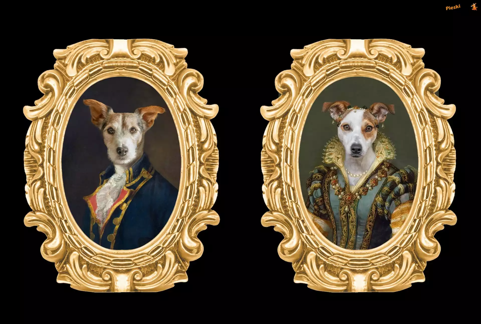 Stroje, Portrety, Czarne, Ramy, Psy, Złote, Tło