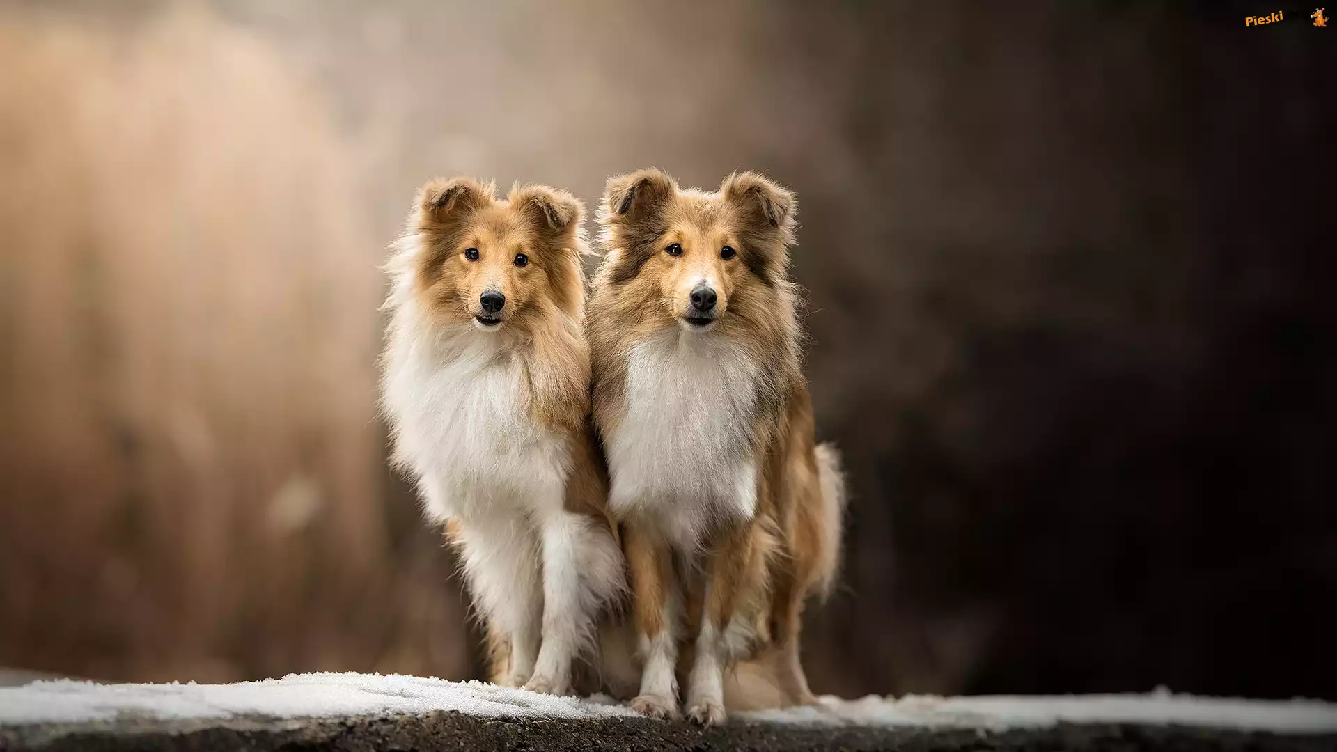 Rozmyte, Psy, Owvczarki szetlandzkie, Tło, Pieski