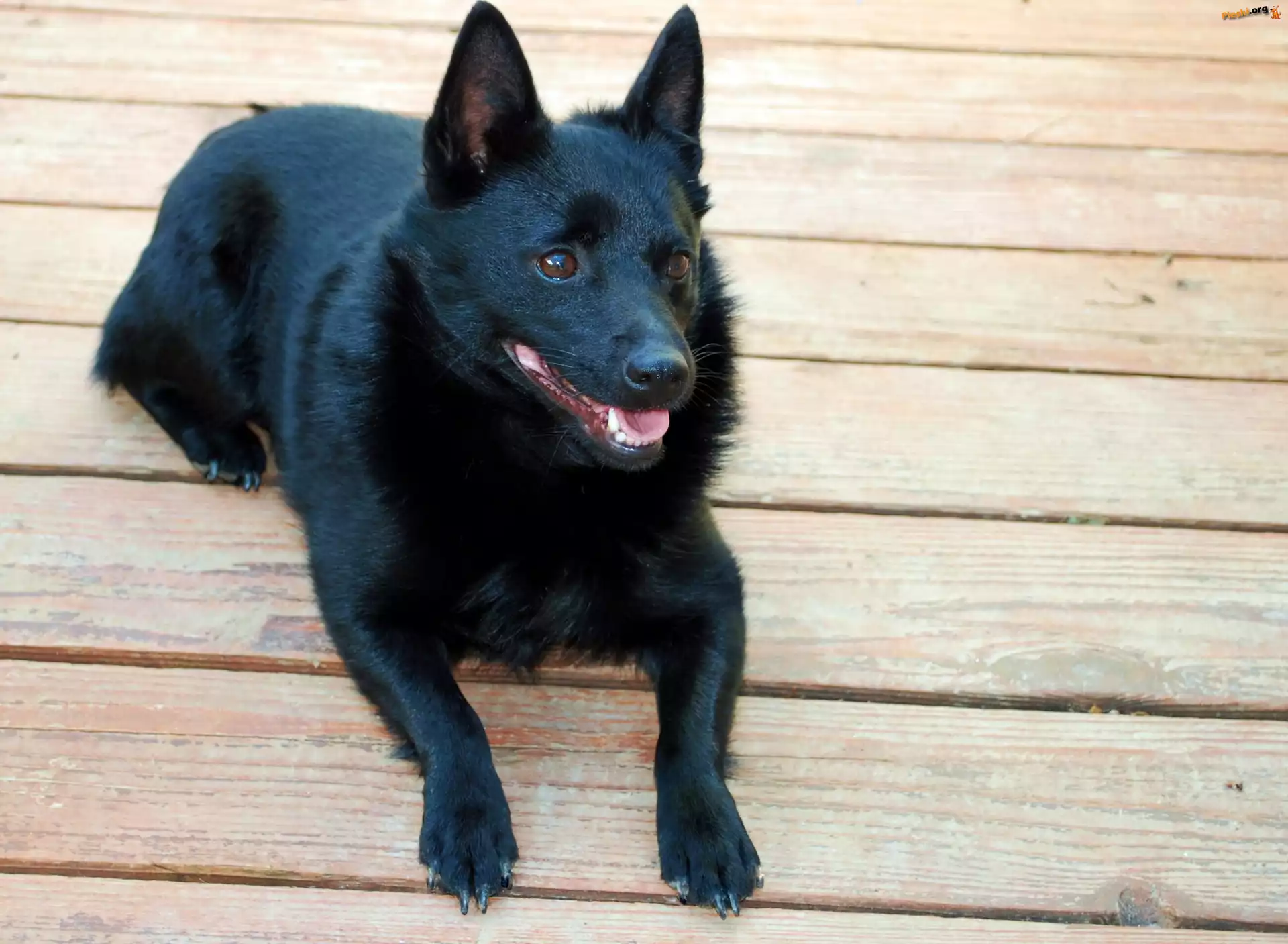 trawa, Schipperke, czarny Schipperke, zabawka szelki, Szczeniak, Schipperke Schipperke, szczeniaki, cztery Schipperke, deski dwa, siedzące, Schipperke