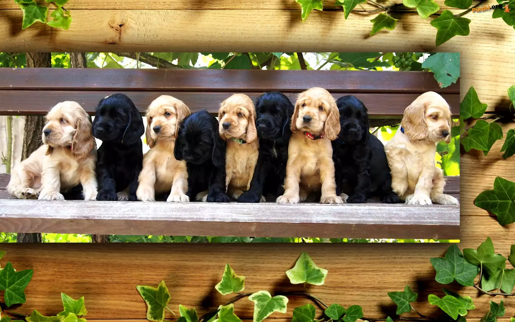 Szczeniaczki, Spaniele, Ławka, Pieski