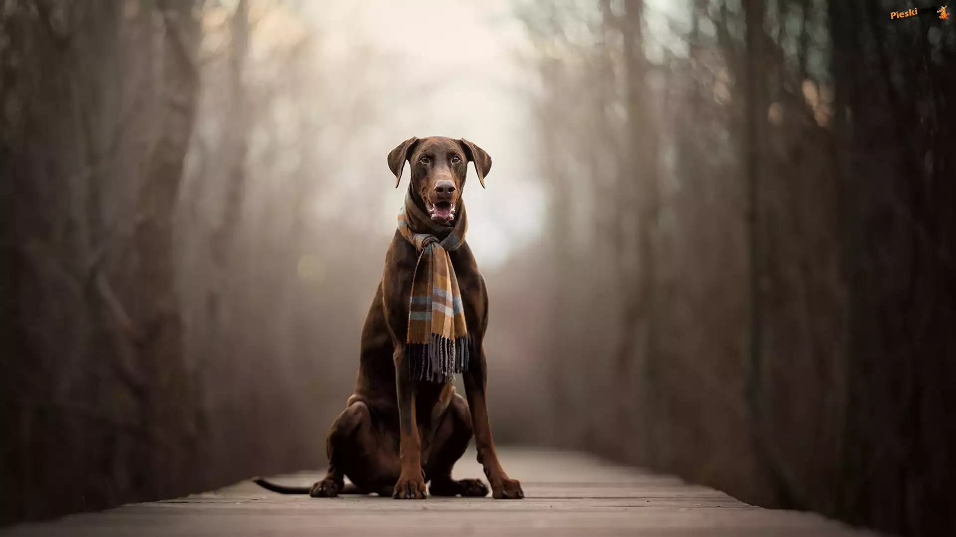 Doberman, Spojrzenie, Obroża Bronzowy, Doberman Mały, Duży, Doberman, Pinczer Doberman Doberman, Mordka, Pies, Brązowy, Wrzosy Czarne, Pies, Doberman, Tło Fotelu, Doberman, W, Pysk Czarne, Doberman, Pies, Światła, Tło Szalik, Pies, Doberman, Kładka
