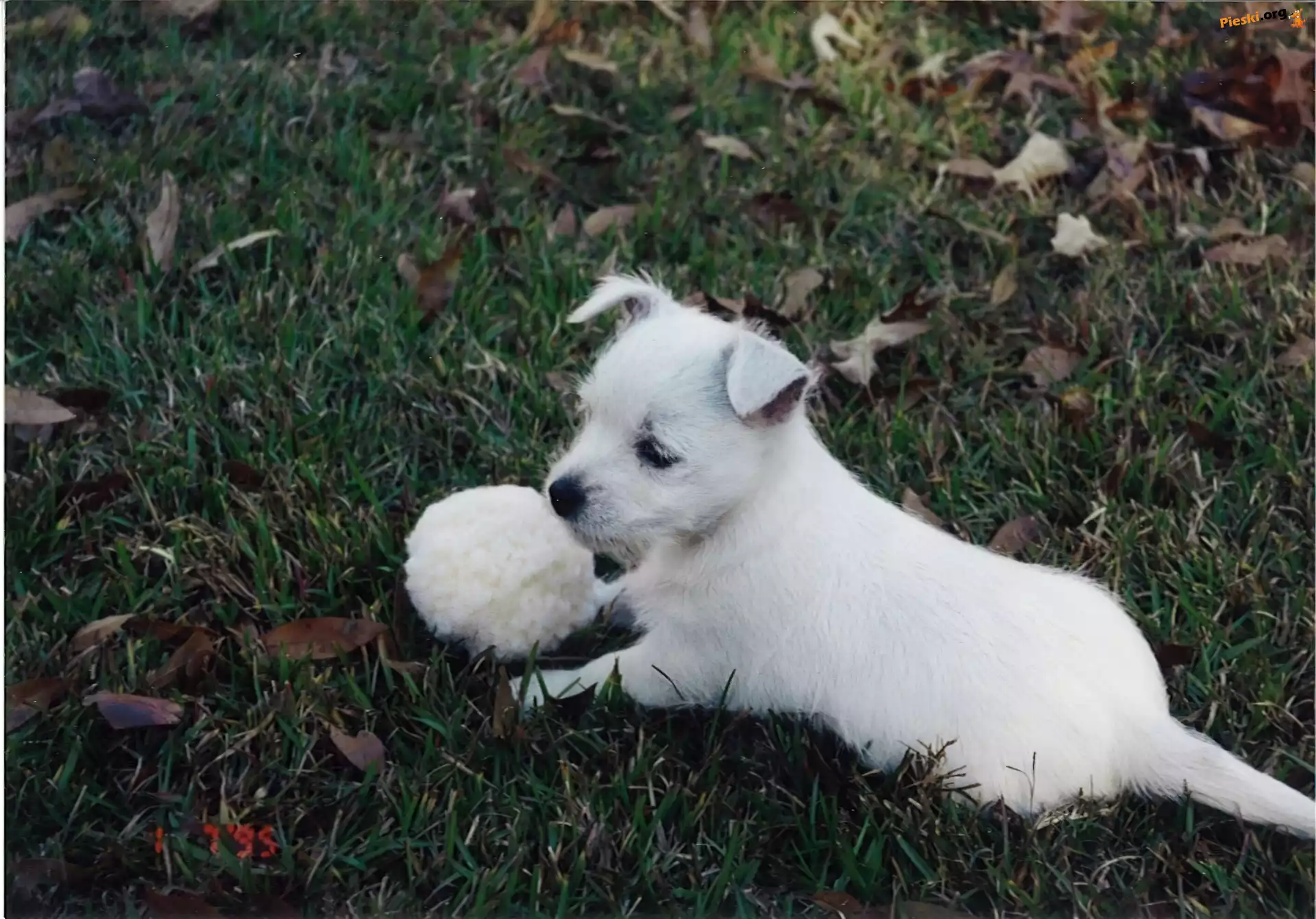 szczeniak, West Highland White Terrier, piłka, Pieski