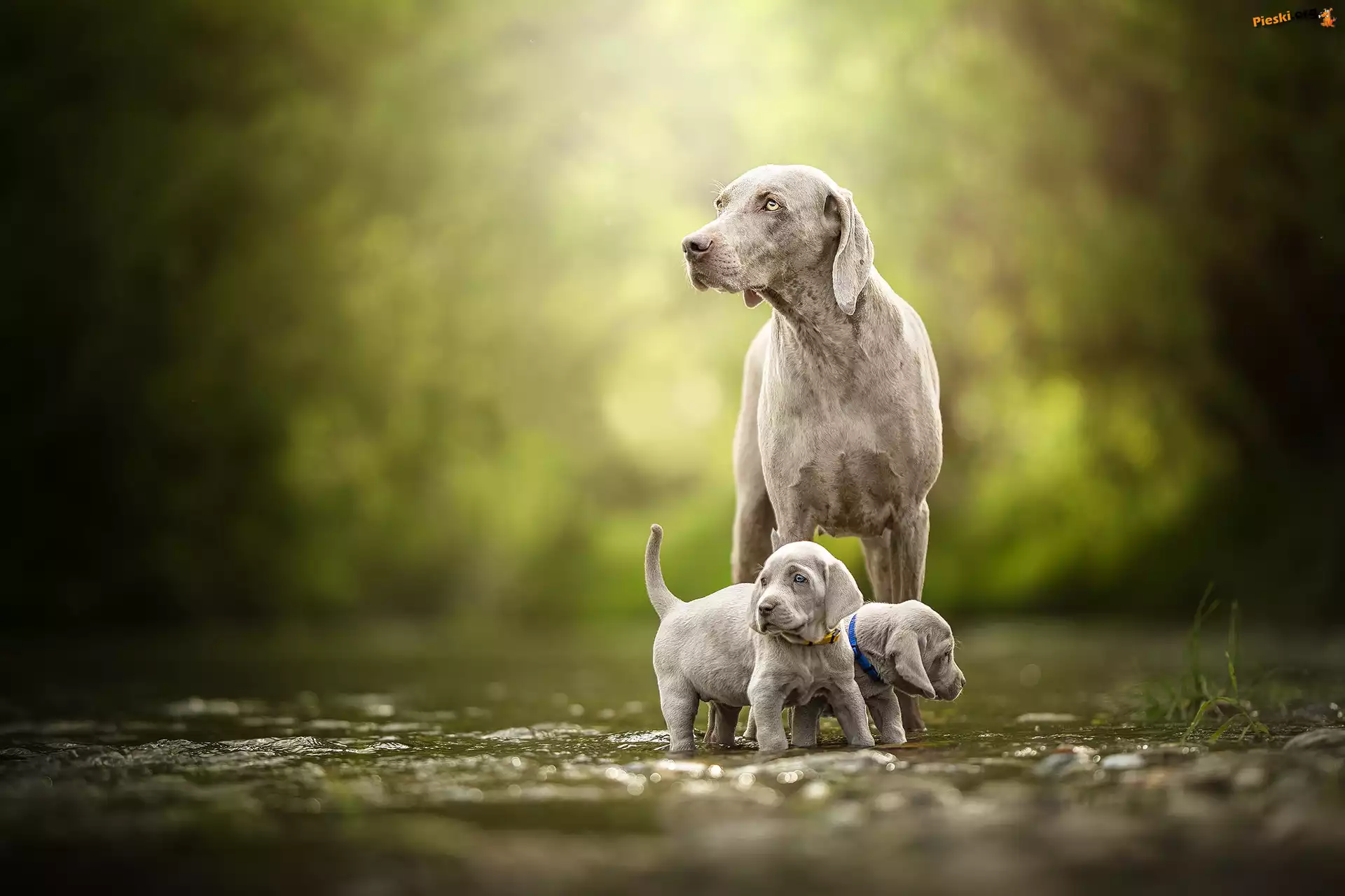 Szczeniaki, Psy, Wyżeł weimarski, Spacer