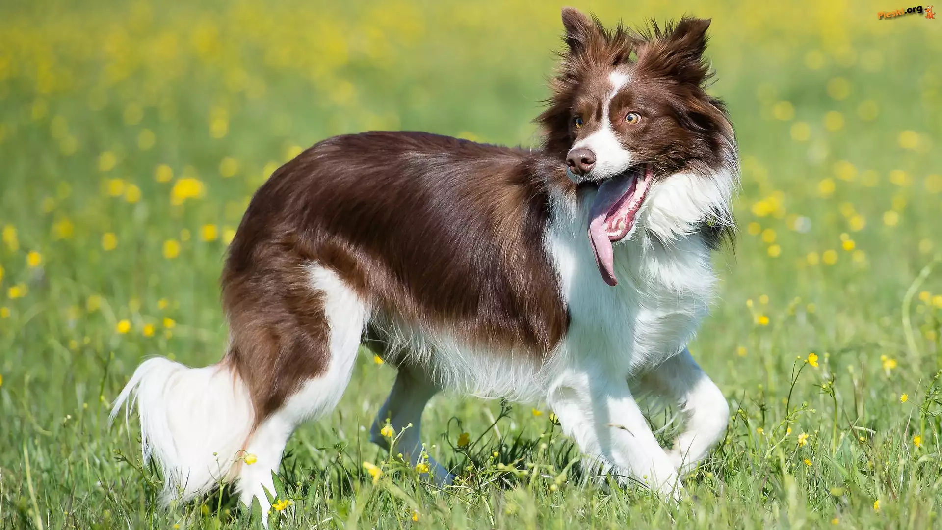 Trawa, Border collie, Pies, Łąka, Kwiaty, Pieski