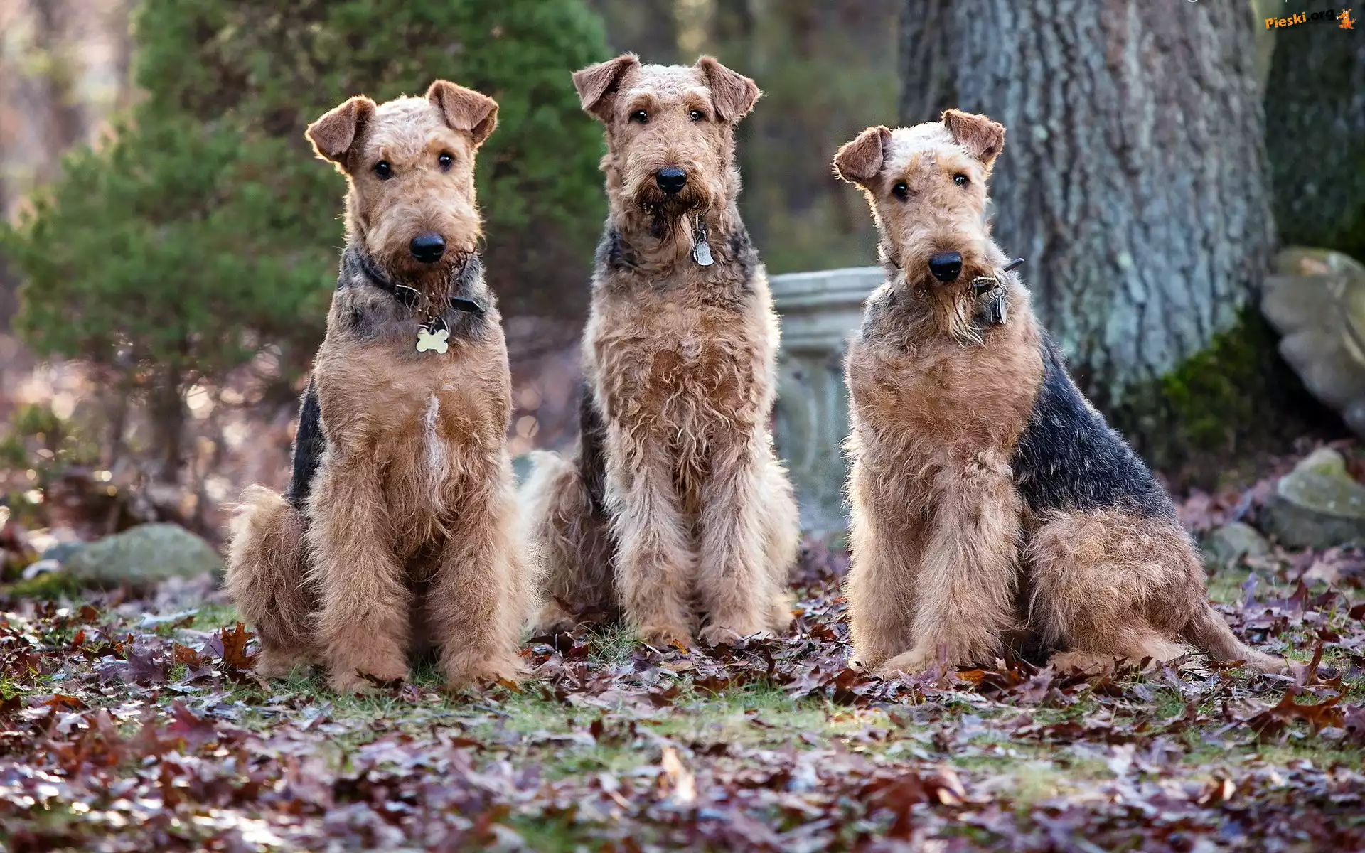 Trzy, Psy, Wire Haird Terrier, Pieski