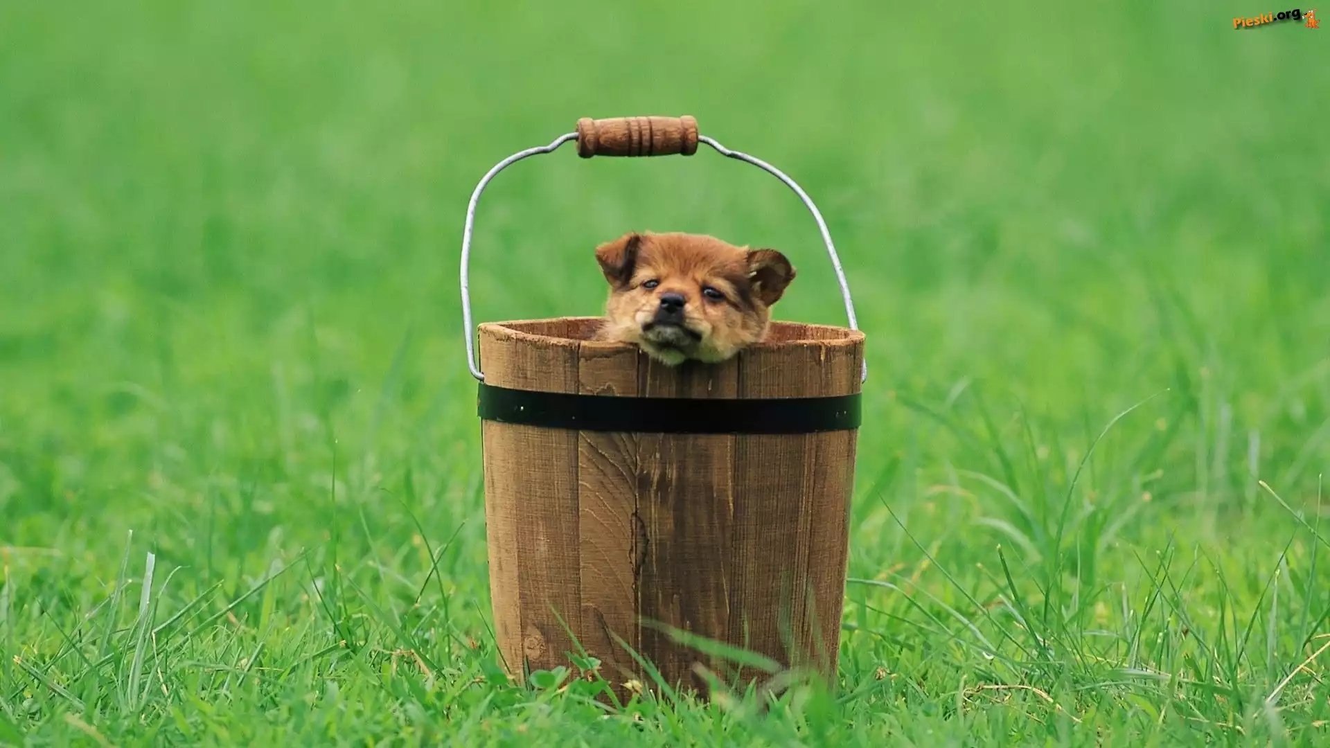 Wiaderko, Zielona, Trawa, Szczeniaczek, Pieski
